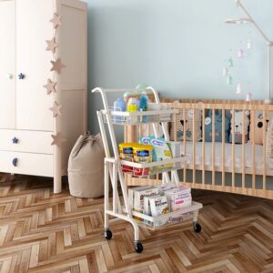 Kitchen Storage Rack Kitchen Trolley Folding Portable Trolley(White)