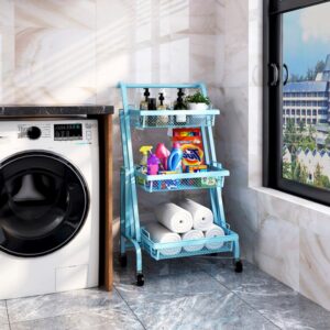 Kitchen Storage Rack Kitchen Trolley Folding Portable Trolley(Blue)