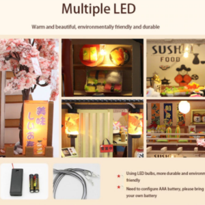 DIY Wooden Dollhouse Sushi Bar Miniature Furniture With LED Kits Dust Cover