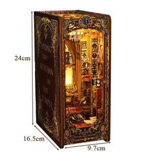 DIY Wooden Book Nook Miniature Dollhouse with musical LED light Sensor 005B